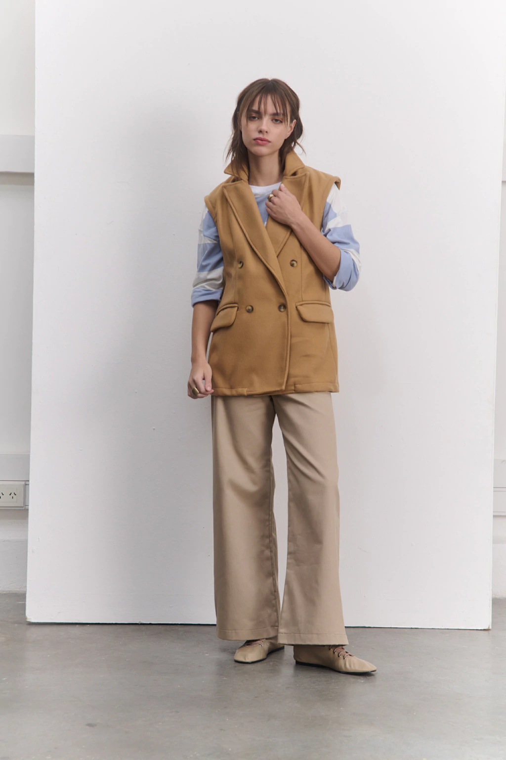 Chaleco largo sin mangas, de corte sastrero con integramente forrado.